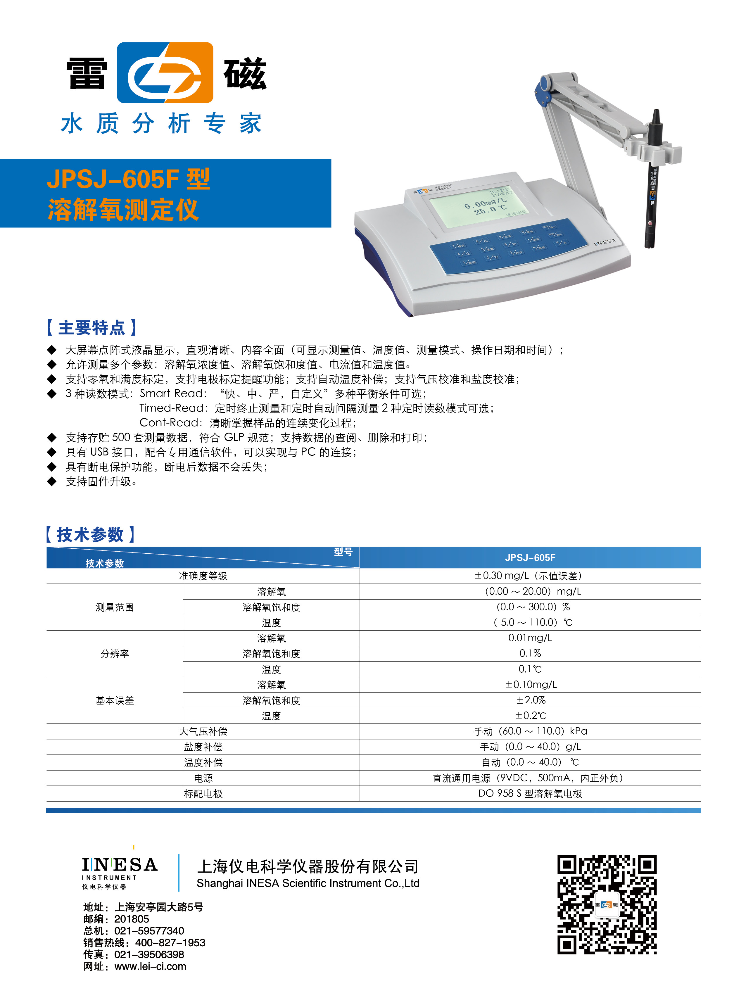 分辨率 | 溶解氧 | 0.01mg/L |