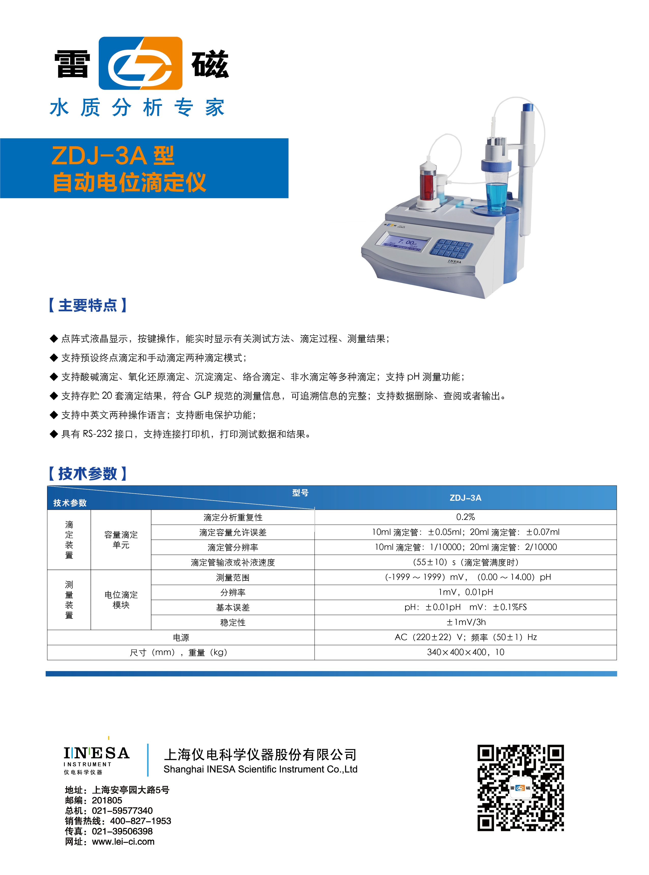 留言板——上海雷磁自動電位滴定儀ZDJ-3A型
