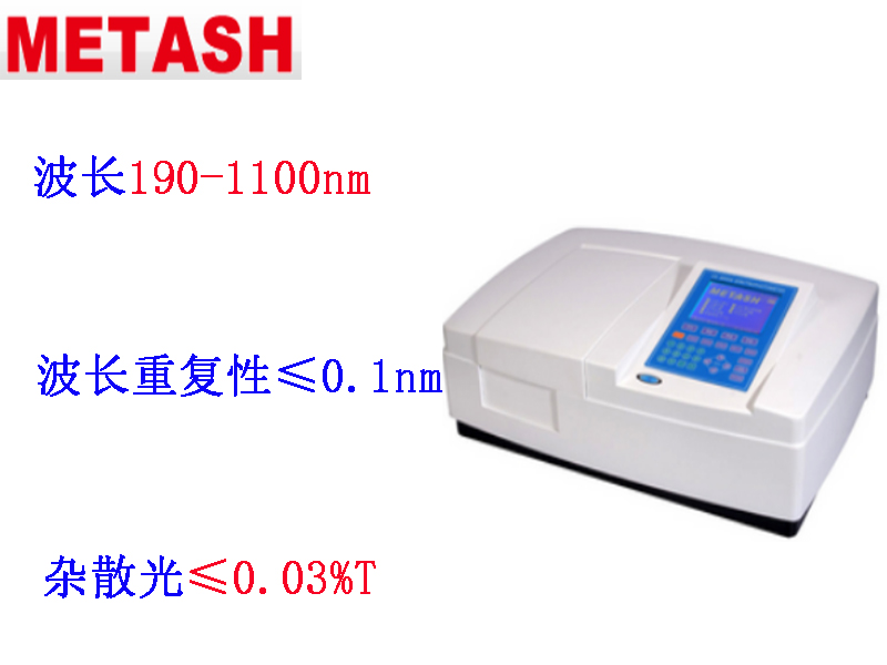 上海元析V-5100H型可見分光光度計波長范圍320-1000nm,光譜帶寬 4nm或2nm可選,雜散光≤0.1%T。V-5100H型可見分光光度計,可存儲200條標準曲線,根據(jù)編號可隨意調用;測量和存儲的數(shù)據(jù)具有斷電保持功能;波長自動校準、自動設定、偏差自我修復